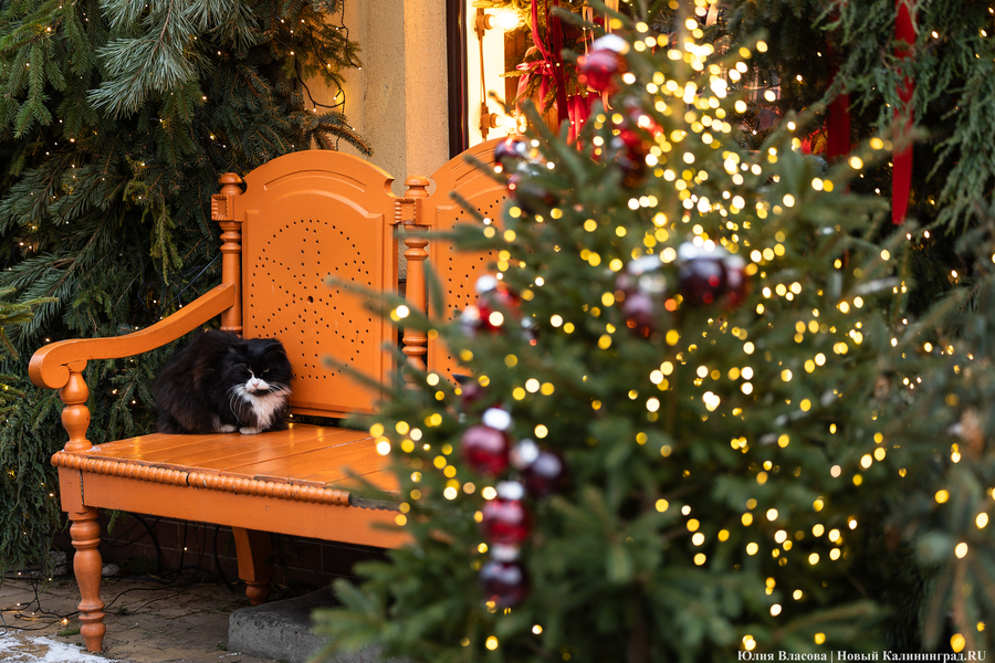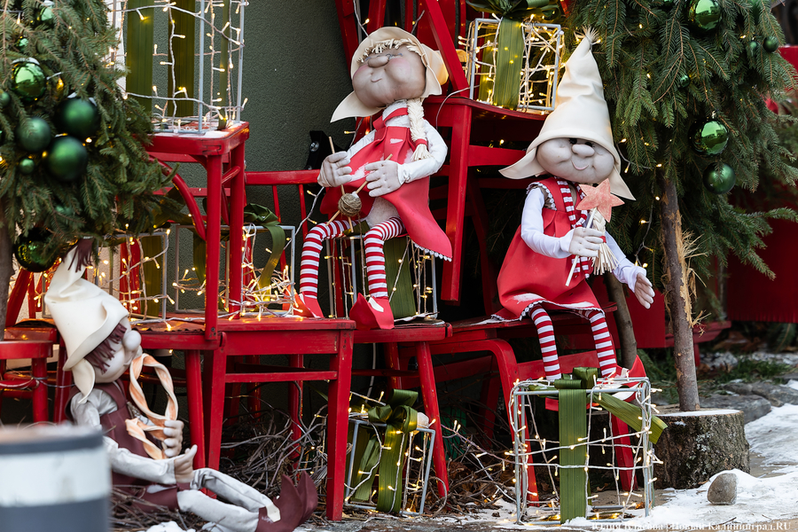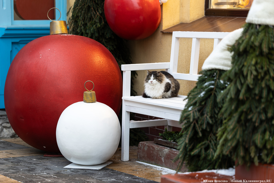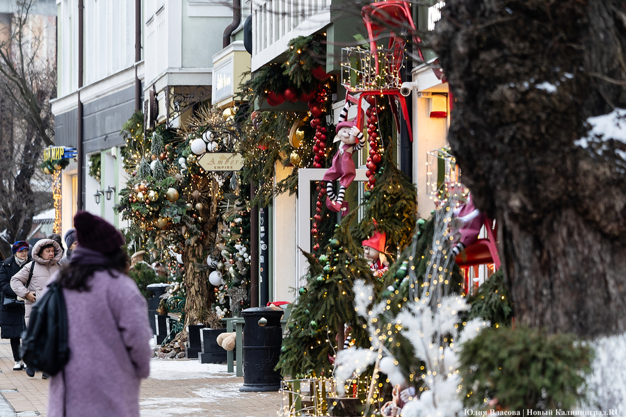 Зеленоградск который год подряд претендует на звание самого новогоднего города области. На этот раз его украсили не менее обильно: магазинчики на главной улице — Курортном проспекте — утопают в бантах, шарах и гирляндах, символизирующих еловые ветки. Гости города с удовольствием со всем этим фотографируются: благо, пока есть возможность — толпы туристов ожидаются немного позднее.