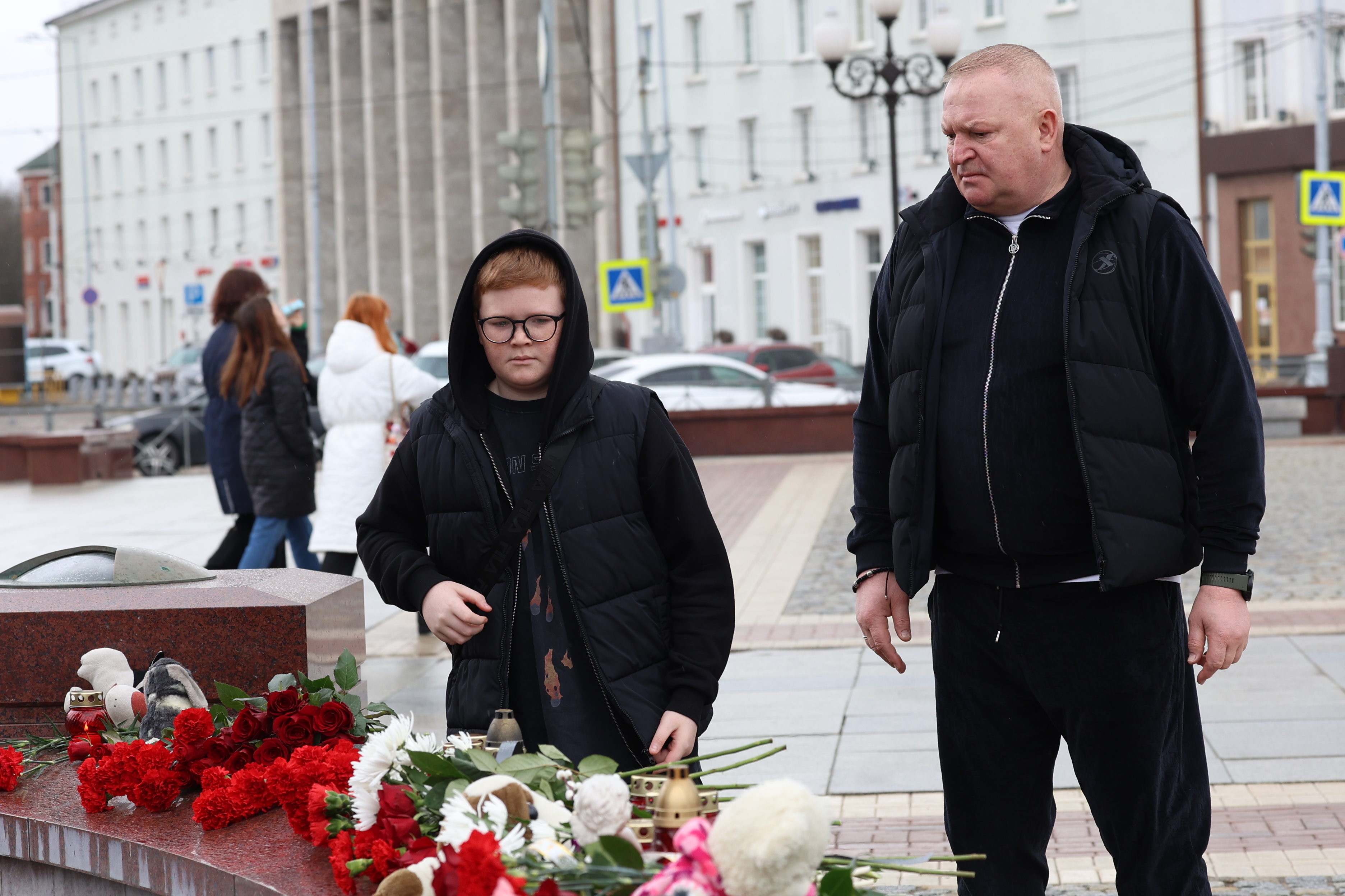 Жители Калининграда несут цветы на площадь Победы в память о жертвах теракта (фото)