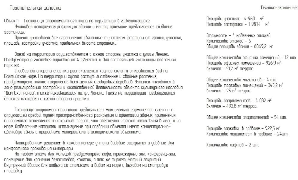 В характеристиках проекта при этом отмечается, что здание будет иметь шесть этажей, в том числе четыре надземных. Его общая площадь — 8 тыс. кв. метров, оно рассчитано на 54 апартамента, 12 офисов, четыре магазина, подземную парковку на 24 места. Площадь участка — 4,9 тыс. кв. м.