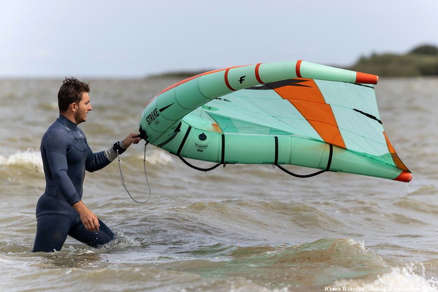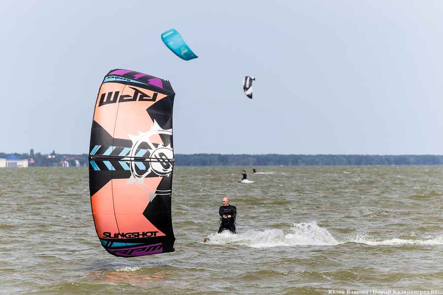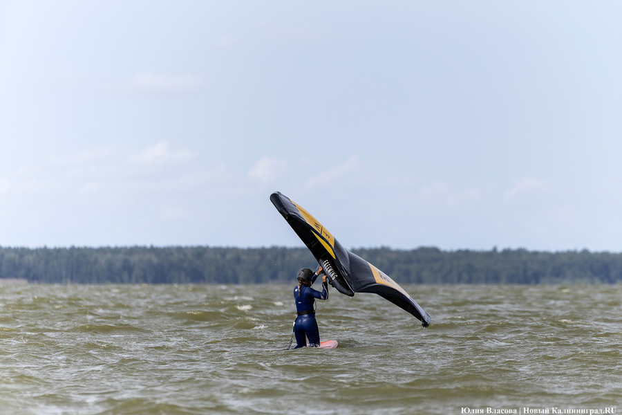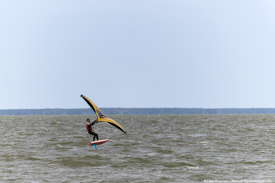 Ветреный понедельник 19 августа был только на руку тем, кто решил состязаться на Куршском заливе. В этот день рядом с поселком Новосельское Зеленоградского района на базе глэмпинга «Космос» прошли региональные соревнования по кайтсёрфингу и вингфойлу, водным видам спорта, активно набирающих популярность в Калининградской области.
