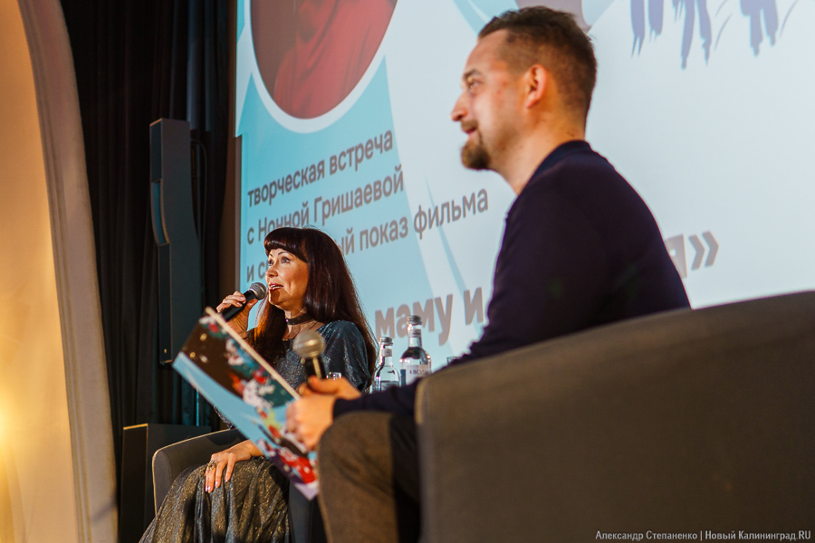 В кинотеатре «Заря» в рамках II фестиваля искусств «Зимние каникулы на Балтике» 3 января прошла творческая встреча с заслуженной артисткой России Нонной Гришаевой, недавно исполнившей главную роль в фильме «Про мою маму и про меня» (12+) (картина была поставлена по мотивам спектакля, который идёт уже несколько лет на подмостках театра РОСТА в Царицыно, художественным руководителем которого является сама актриса). Беседа с ней продлилась час и касалась не только нового фильма, показанного после встречи, но и сериала «Папины дочки», современного детского театра и кино. Приводим пару цитат со встречи.