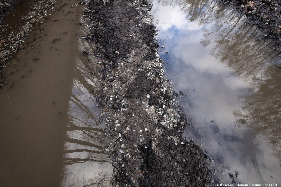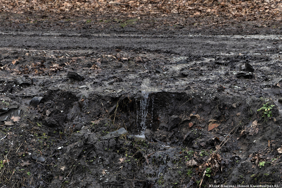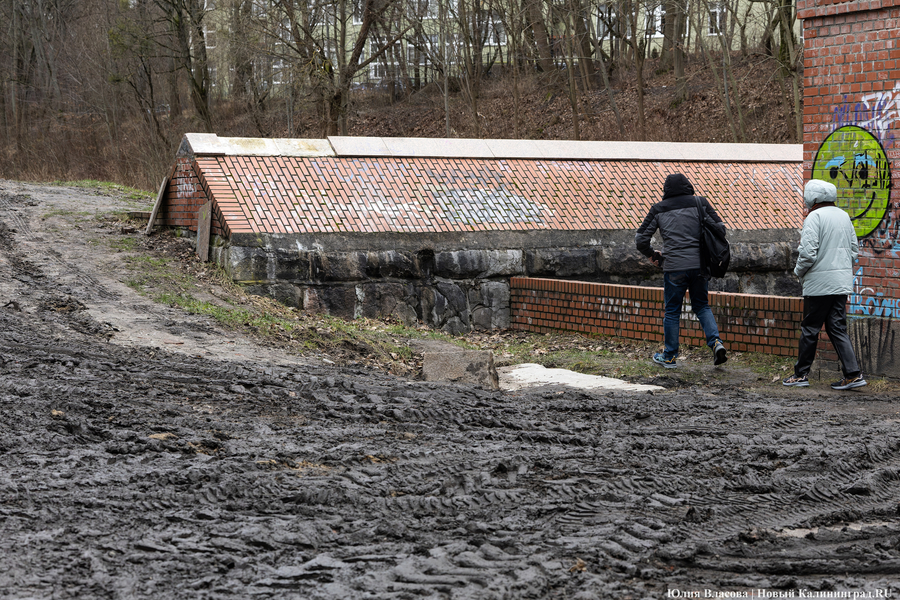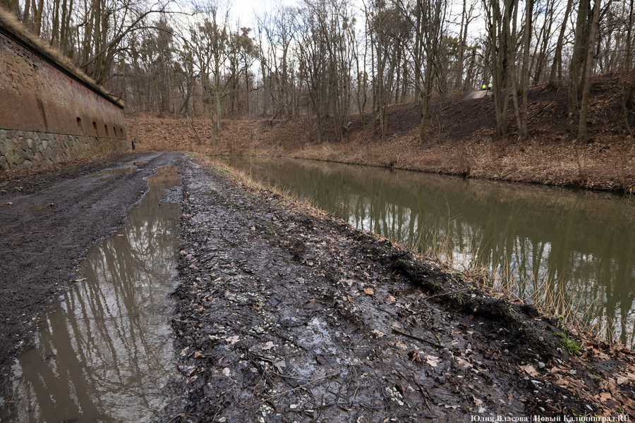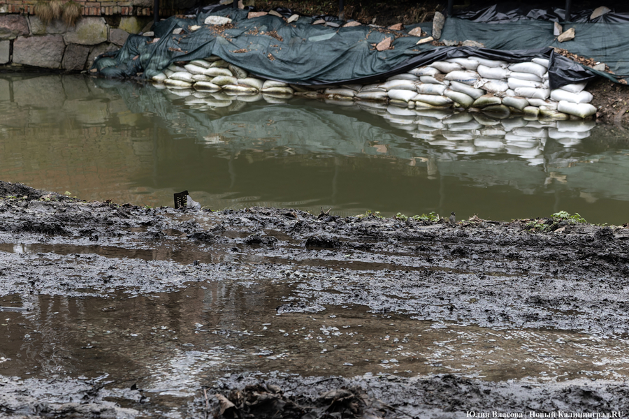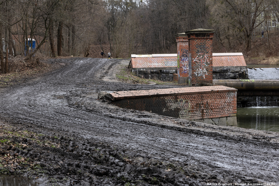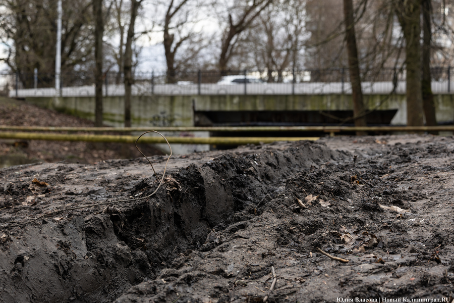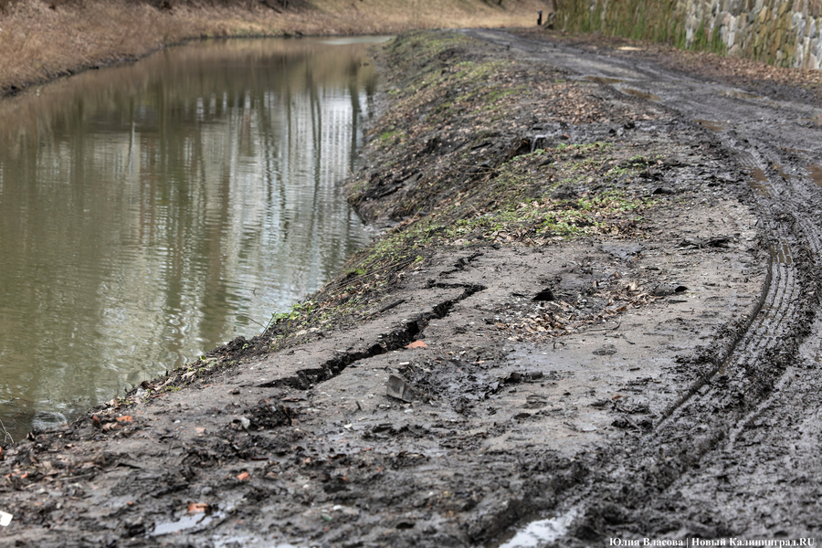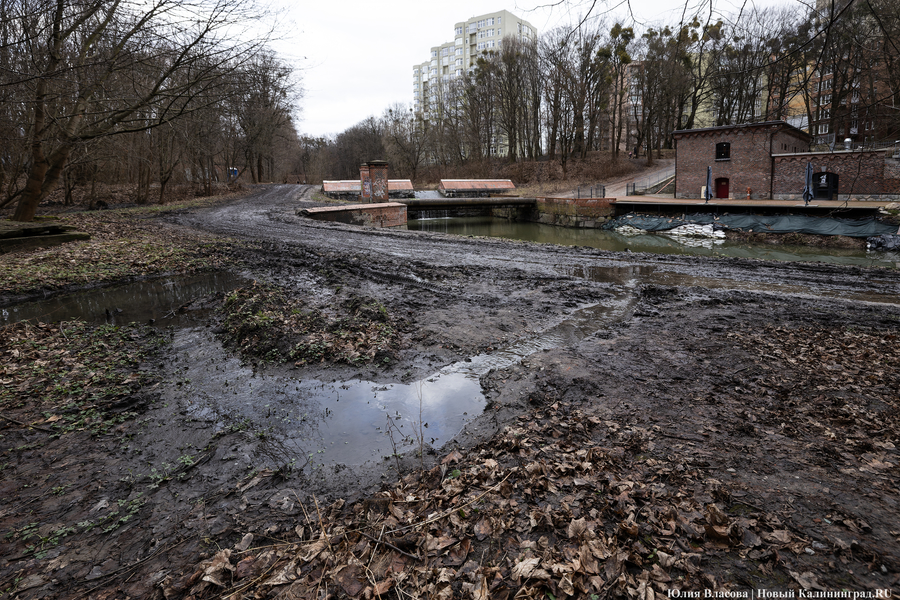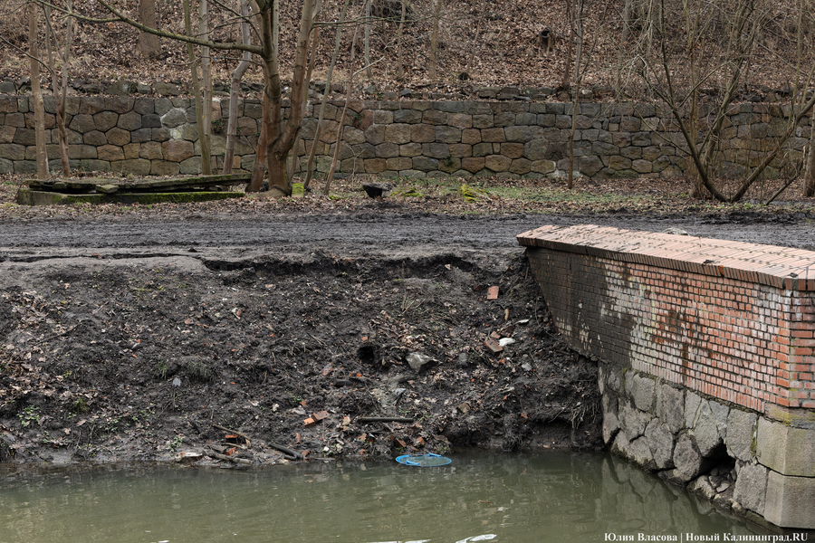 Литовский ручей, расчистка которого завершилась в декабре прошлого года, может быть и стал чище, но только для рыб, а не для людей. Берега водоёма, на которых ранее можно было заметить гравийные дорожки, сейчас покрыты непролазной грязью. Более того, на некоторых участках (например у музея «Блокзауз») склон начал постепенно съезжать в воду.
