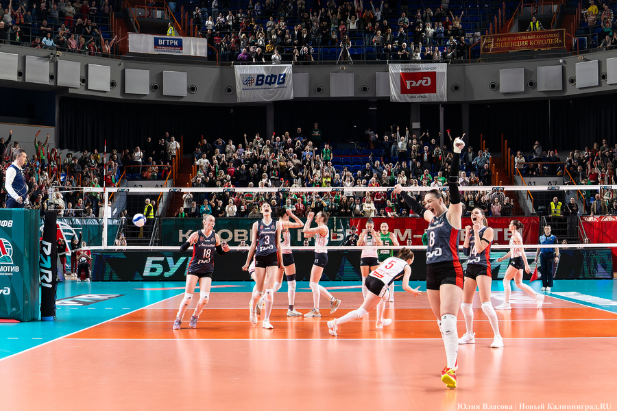 Такой же результат получился и в игре в понедельник. Первые две партии «Локомотив» выиграл со счётом 25:20 и 27:25 соответственно. Третий сет остался за «Уралочкой» — 28:26. Четвёртую партию забрали железнодорожницы: 26:24. За этим противостояниям наблюдала фотокорреспондент «Нового Калининграда» Юлия Власова.