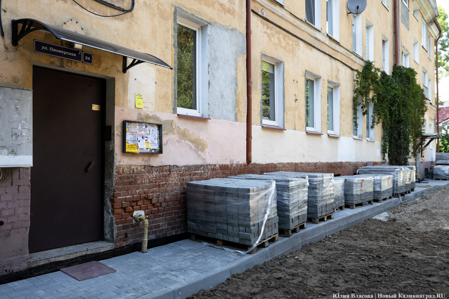 Жители Пионерской, 24-26 при обсуждении проекта благоустройства, например, отказались от площадки и парковки, решив просто замостить территорию подъездов, а также тротуары и зоны отдыха. Работы выполняет ООО «СК КПК». По словам представителя подрядчика, благоустройство идёт с опережением графика.