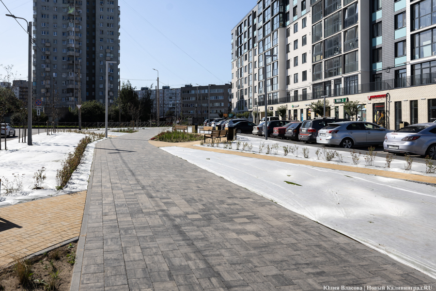 «На сладкое» власти оставили общественную территорию на ул. Батальной, которую за свой счёт обустроил застройщик — компания «КалининградСтройинвест». На площади более 2000 кв. м. сделали пешеходные дорожки, освещение, установили скамейки и урны, провели озеленение.