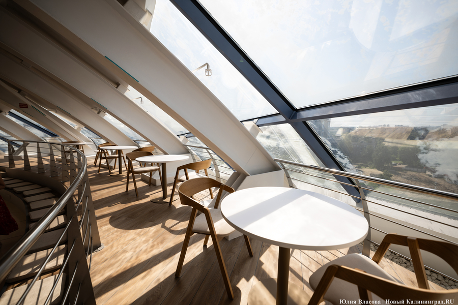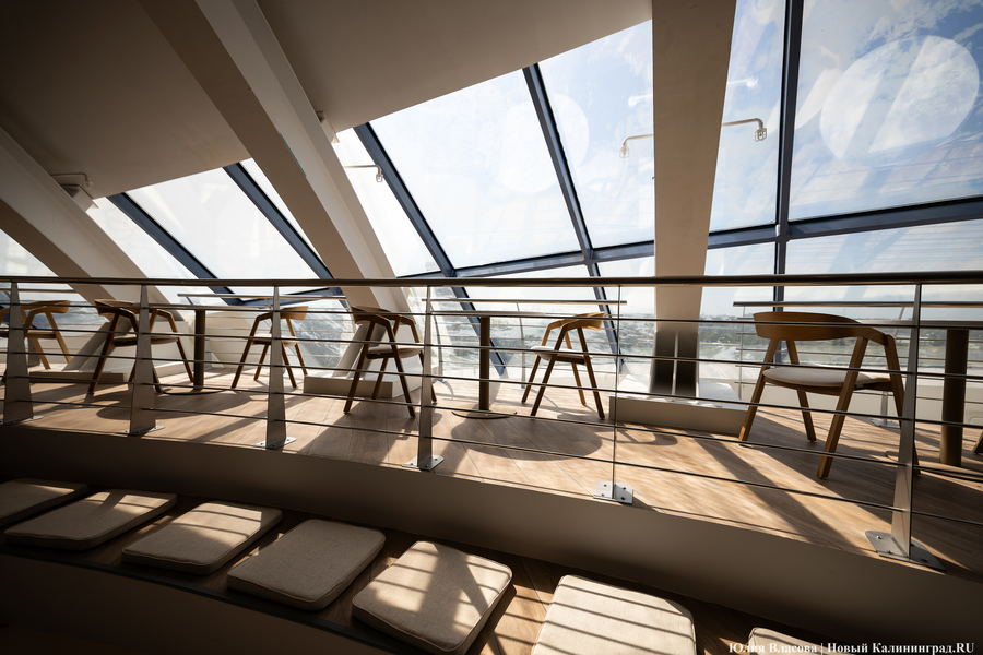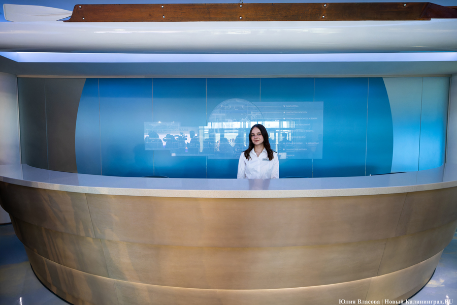 Завершилась экскурсия на капитанском мостике — он же библиотека, откуда открывается потрясающий вид на город. Важной деталью интерьера, на который особенно обратил внимание генеральный директор Музея Мирового океана Денис Миронюк, является столетний белый рояль немецкой фирмы Ronisch. На нем никто не играл, но это тот случай, когда на вещь просто посмотреть приятно. В будущем, по его словам, посетители смогут, сев «на вершине планеты» за столик, почитать на планшете книгу, выпить кофе. В общем, провести время приятно и с пользой.