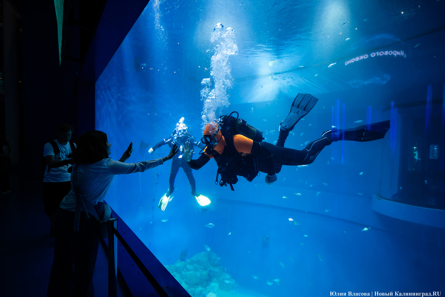 Среди прочих аквариумов в этой лаборатории есть такой, в котором плавают... аквалангисты. «Не подумайте, что эти ребята здесь специально для вас», — поспешила заверить Светлана Сивкова. Она объяснила, что это самый большой на «Планете» аквариум — восемь метров глубиной — его нужно чистить, мыть стёкла, кормить рыб — иногда даже с рук — поэтому аквалангисты будут там частыми гостями.
