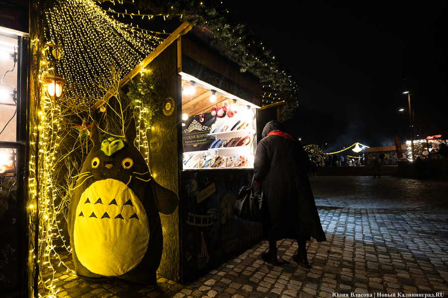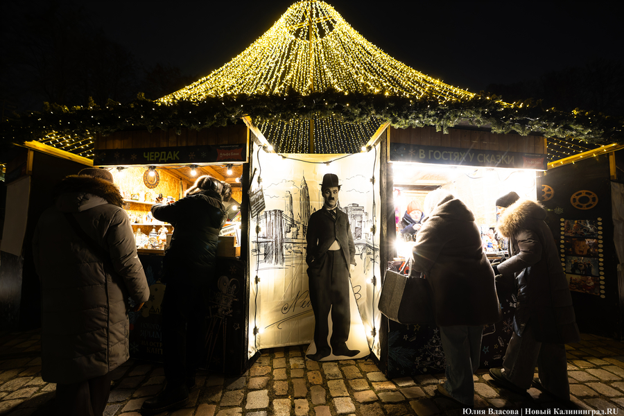 Два дня назад в Калининграде на острове Канта заработала праздничная ярмарка (0+), которая продлится до 11 января и будет принимать гостей даже в новогоднюю ночь. Организаторы приглашали гостей и жителей города посмотреть на реконструкцию известных фильмов, попробовать форшмак, поучаствовать в мастер-классах и послушать киномузыку. А в качестве оформления был обещан «киношный» реквизит из известных фильмов «поскольку снежные декорации в Калининград еще не доставили». В рабочие дни ярмарка доступна с 12:00 до 21:00, а по выходным и праздникам — с 11:00 до 22:00. В новогоднюю ночь она будет продолжать работу до 3:00.
