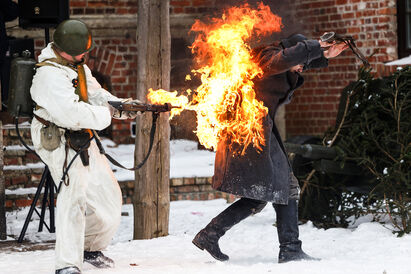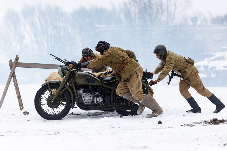 В Полесске в минувшее воскресенье, 25 января, отметили очередную годовщину взятия Лабиау войсками Красной армии военно-исторической реконструкцией. Согласно сценарию уличного боя, немецкий гарнизон занял позицию в пивоварне Бланкенштайна и обнаружил себя, обстреляв советских мотоциклистов. Последние, сделав разворот на 180 градусов, вернулись за подмогой.