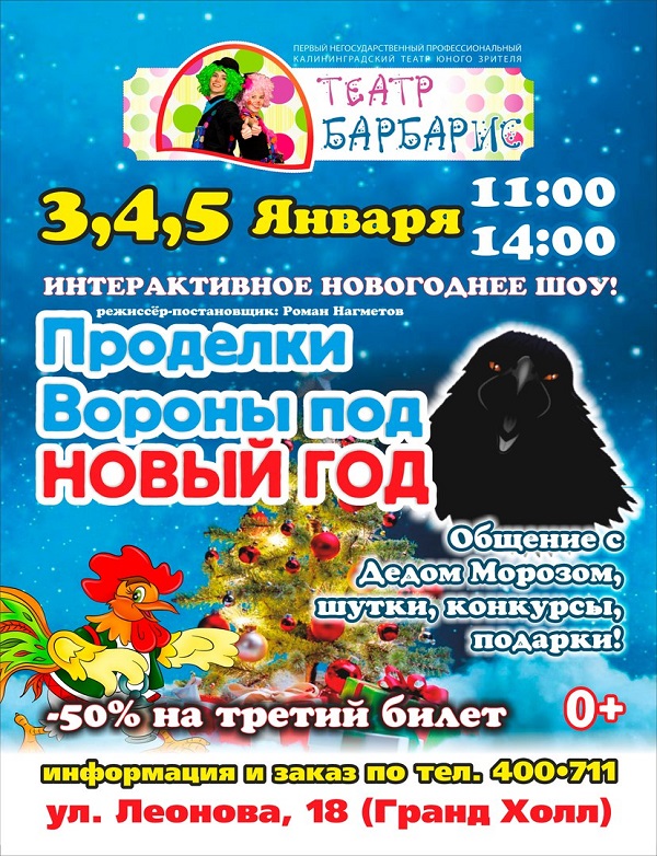Сейчас в театре «Барбарис» идёт активная подготовка к новогодним представлениям. Это будет необычное интерактивное шоу «Проделки Вороны под Новый год». Зрителей ждёт много сюрпризов, общение с Дедом Морозом и подарки.