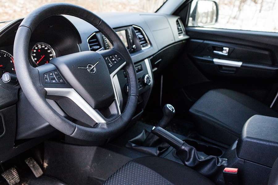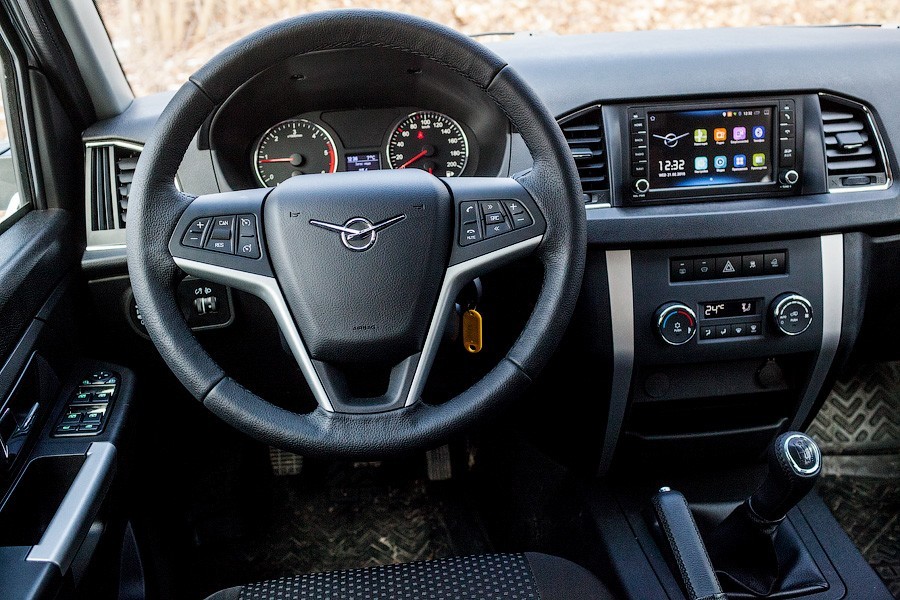 В «Патриоте» и раньше было многое из того, что необходимо по меркам современного комфортного оснащения: блок электростеклоподъемников на водительской двери, «вежливый» салонный свет, подстаканники и широкий подлокотник с нишей внутри. Но теперь внедорожник выходит на новый уровень. Современное рулевое колесо с кожаной отделкой регулируется по углу наклона и вылету, а многочисленные кнопки на нем позволяют не отвлекаясь от дороги управлять громкой связью,