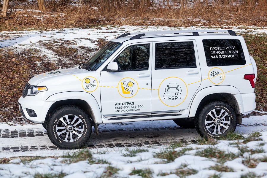 Впервые в своей истории обновленный УАЗ «Патриот» обзавелся набором систем активной безопасности от Bosch. Это система стабилизации курсовой устойчивости (ESP), система контроля тягового усилия (TRC), система контроля торможения в повороте (CBC), гидравлический помощник торможения (HBA), который срабатывает при аварийном торможении и как бы «дожимает» педаль тормоза, система помощи при начале движения на подъеме (HHC) и, наконец, режим