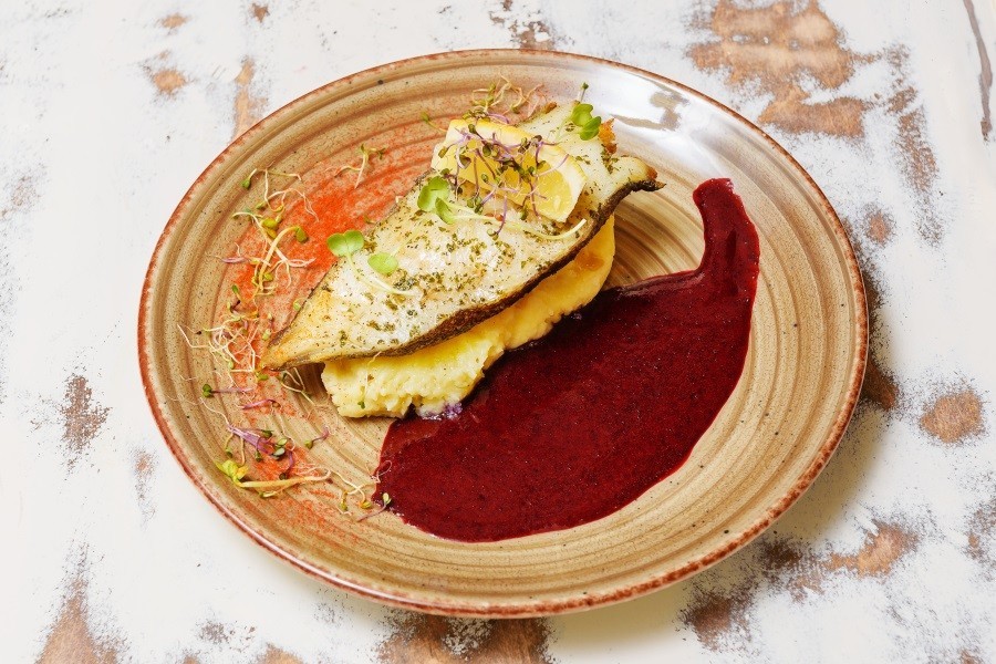 Но закусками в ресторане лучше не ограничиваться (хотя и к ним в ресторане относятся с особым пиететом). Меню изобилует всевозможной русской классикой, по которой многие успели соскучиться среди обилия итальянской пасты, пиццы и японских роллов. Есть кавардак с пряной балтийской килькой и перепелиным яйцом, свиные пятаки, нежнейшее заливное из судака, которое так вкусно перемешивать с приправой из хрена, строганина из пеламиды или мраморной говядины, рыбная уха, томлёные щи для сторонников традиционных гастрономических ценностей, а также жареный палтус с соусом из черники для тех, кто готов отважиться на небольшие кулинарные эксперименты.