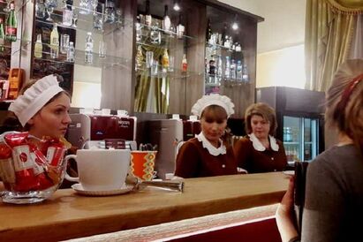 До вечернего спектакля и в антракте зрителей быстро обслуживают четыре официантки. В ассортименте — горячие и холодные напитки. Кроме бутербродов с икрой, ветчиной, сыром и колбасой здесь три вида тортов домашней выпечки на натуральном сливочном масле. Цены доступные — от 50 до 150 рублей.