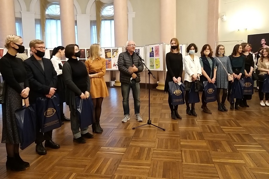 А в праздничный вечер взрослую публику пригласили на открытие выставки театральных афиш. Приветствуя молодых дизайнеров, профессор БФУ им. Канта Борис Миронов отметил: «Большинство работ, отобранных в ходе конкурса, выполнили наши студенты-графики 3 курса. Среди них есть очень достойные. Рад за ребят и их преподавателей». Заместитель художественного руководителя драмтеатра Ирина Гилка поблагодарила всех участников конкурса и назвала победителя. Театральное жюри признало лучшими работы Клары Беницкой ко всем трем спектаклям: «Примадонны», «Мастер и Маргарита» и «Лорд Фаунтлерой».