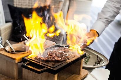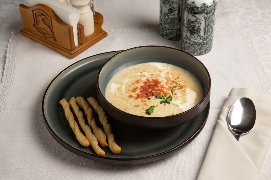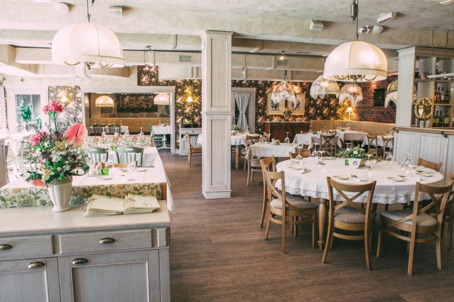 Интерьер ресторана одновременно изысканный и домашний. Выбирайте столик по вкусу: в уютном большом зале или на крытой террасе, если позволяет погода. Компании могут уединиться в банкетном зале.