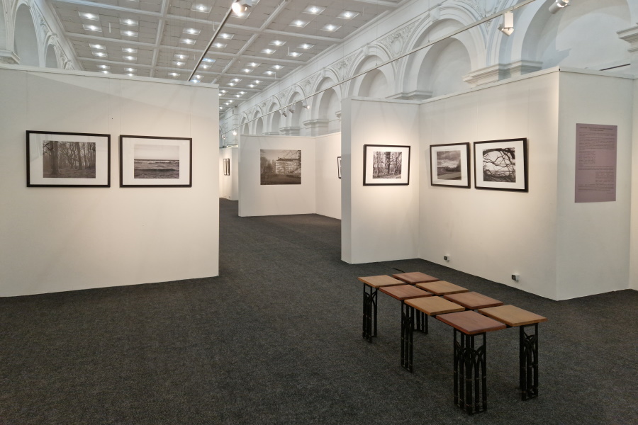 Открывают выставку произведения калининградского фотохудожника Александра Матвеева: «Работая над проектом, я думал о его стилистике, визуальном языке: хотелось сделать строгие монументальные пейзажи, поработать с солнечным светом. Я снимал на рассвете или ближе к вечеру, чтобы поймать золотистый косой свет. Среди многолетних дубов и заросших аллей — кадры, как заигрывание с вечностью. Момент пойман на пленку, негатив можно взять в руки — всё осязаемо», — говорит Александр Матвеев, который представляет серию «Грюнхофская элегия».