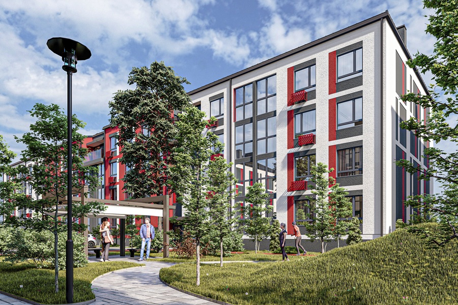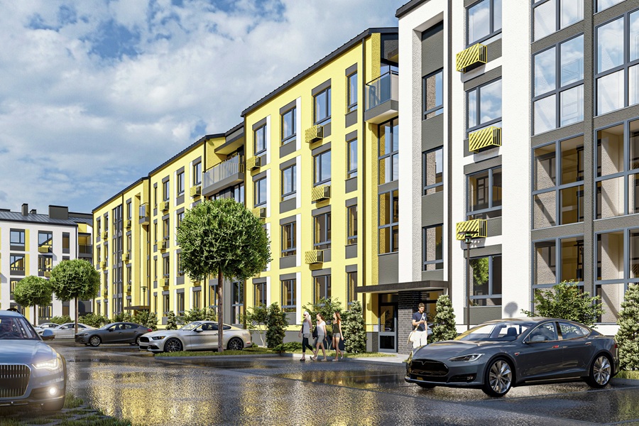 ЖК «Яркий» привлекает не только расположением, но и архитектурой: аккуратные современные четырёхэтажные дома гармонируют с ландшафтом вокруг. Построены они из керамических блоков, что обеспечивает тепло, надёжность и долговечность. Сейчас возводятся первая и вторая очереди комплекса, а всего их будет пять. В общей сложности появится 35 домов, и каждая очередь будет оформлена в своём цвете — не случайно комплекс носит такое название.