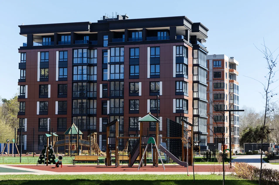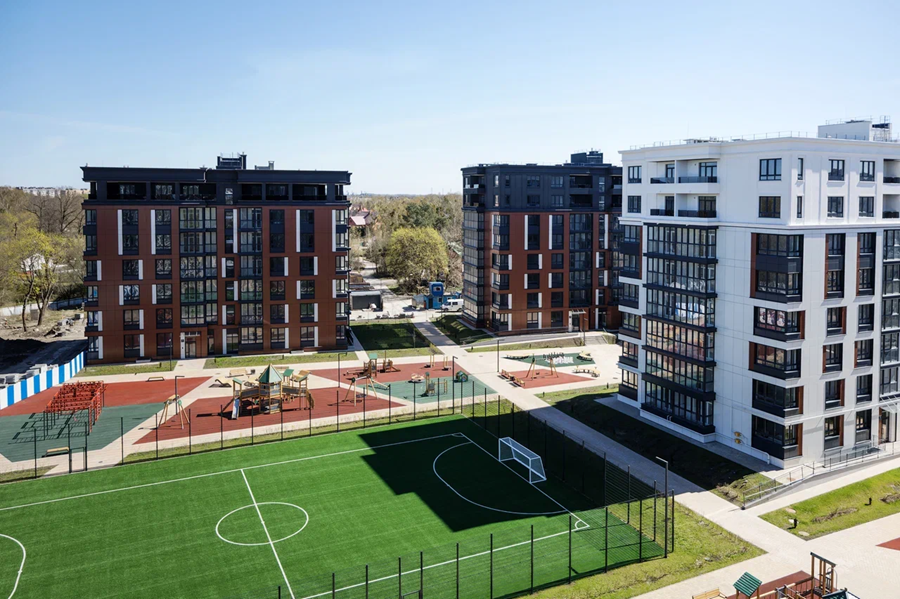 Фактически в мкр. Космодемьянского уже образовывается новый жилой массив в едином стиле с видом на лес. На первых этажах разместятся магазины и другая бытовая инфраструктура, необходимая для комфортной жизни. Во внутреннем дворе комплекса — футбольное поле и современные детские площадки.