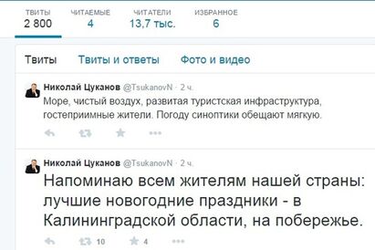 «Напоминаю всем жителям нашей страны: лучшие новогодние праздники — в Калининградской области, на побережье», — написал Цуканов.