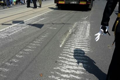 Военная техника, принимавшая участие в параде Победы в Калининграде, повредила асфальт в центре города. Об этом корреспонденту «Нового Калининграда.Ru» сообщили очевидцы. По словам зрителей, гусеницы техники раскрошили асфальт напротив здания администрации города, превратив участок в «стиральную доску».