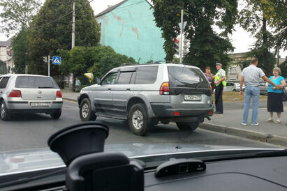 Авария произошла неподалеку от съезда с путепровода. Столкнулись автомобили «Фольксваген Гольф» и «Митцубиси Паджеро». Никто из людей в результате аварии не пострадал. Движение транспорта затруднено в сторону центра города.