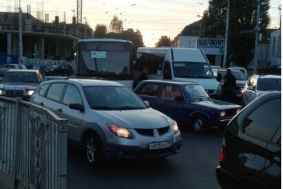 На 9 Апреля столкнулись автобус и маршрутка, серьезная пробка (фото)