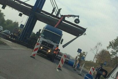 Из-за демонтажа поста ДПС на выезде из Калининграда образовалась пробка (фото)
