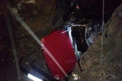 В Калининграде машина упала в кювет и загорелась (фото)
