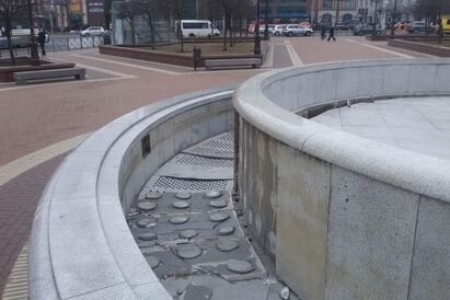 В пресс-службе мэрии города пояснили, что разрушения гранитной облицовки фонтана у ТЦ «Кловер» будут устраняться в рамках контракта на текущее обслуживание городских фонтанов в 2016 году. «Работы планируется провести до 1 мая — к открытию сезона фонтанов. На текущее содержание 12 городских фонтанов в бюджете Калининграда на 2016 год предусмотрено 3 млн рублей», — отметил собеседник «Нового Калининграда.Ru». Соответствующий аукцион по поиску подрядчика, по словам сотрудника пресс-службы, будет объявлен на сайте госзакупок в ближайшее время.