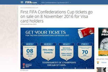 ФИФА начинает продажу первых билетов на Кубок конфедераций-2017 в России