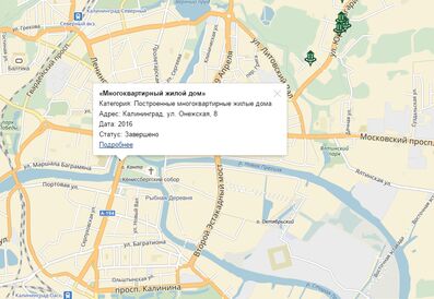 Власти Калининграда запустили на сайте администрации интерактивную карту новостроек, на которой можно посмотреть информацию о домах, введённых в эксплуатацию с января до конца сентября 2016 года, сообщили корреспонденту «Нового Калининграда.Ru» в