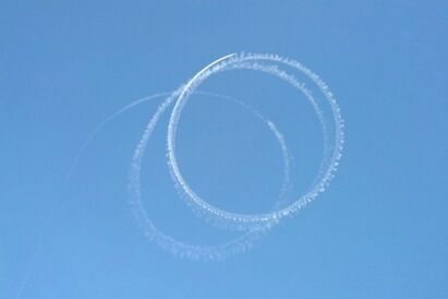 Пользователи соцсетей в калининградском сегменте интернета стали массово постить фото конденсационного следа. Круги в небе появились над поселком Хмелевка около полудня. Они также были видны и в Калининграде.