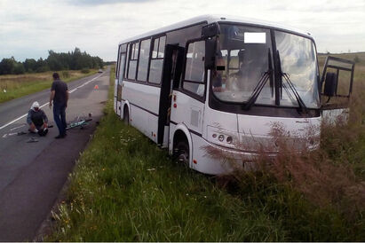 Водитель автобуса, чтобы избежать столкновения, начал объезжать велосипедиста слева, в результате задел его по касательной правой стороной транспортного средства, после чего съехал в кювет. В результате ДТП