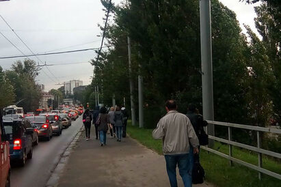 Всё битком: из-за ремонта жители «Балтрайона» вынуждены выбираться из него пешком (фото)