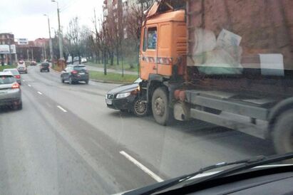 На Московском проспекте столкнулись «Вольво» и грузовик, собирается пробка (фото)