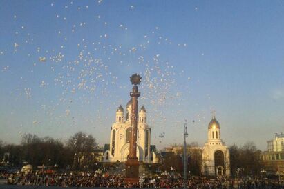 В память о погибших в Кемерово калининградцы выпустили в небо сотни белых шаров