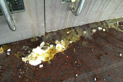 8 апреля на Пасху неизвестные закидали вход в здание администрации сырыми яйцами.