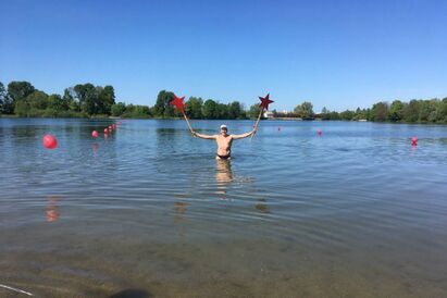 Члены калининградского клуба закаливания и зимнего плавания «Янтарные моржи» устроили на озере Шенфлиз заплыв, посвященный Дню Победы. Об этом корреспонденту «Нового Калининграда» сообщил руководитель клуба Кирилл Порошин. Праздник «Дорога жизни» прошел в воскресенье. Члены клуба переплыли озеро с флагами и под песню «День Победы».