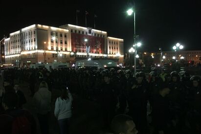 На площадь Победы после поражения Сербии стянули ОМОН (фото)