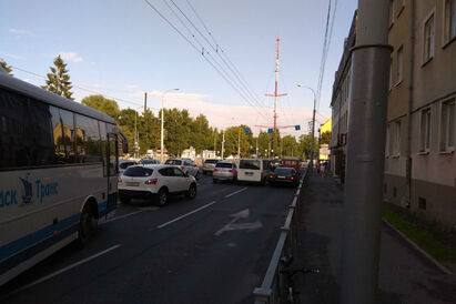 Перед пересечением с ул. Гайдара и Яналова столкнулись легковой автомобиль марки «БМВ» и микроавтобус «Форд Транзит». Участники аварии перекрыли крайнюю правую полосу движения в сторону центра города. «Пробка огромная», — отметил очевидец.