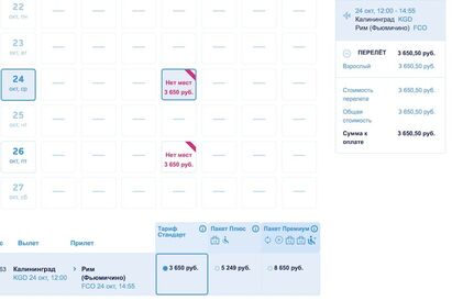Минимальная стоимость билета без багажа в одну сторону из Калининграда в Рим составляет 3650 рублей, из Калининграда в Лондон — 2086 рублей. Продажа билетов пока закрыта.