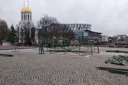 Напомним, работы по монтажу новогодней ели начались в центре Калининграда начали в воскресенье.