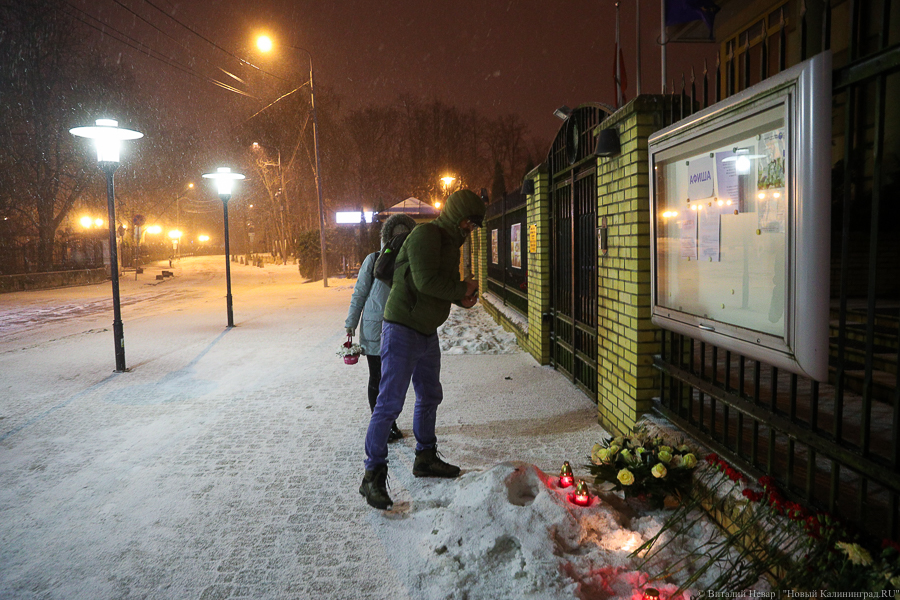 На снимках — цветы у консульства Польши в Калининграде. Фото — Виталий Невар, «Новый Калининград»