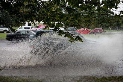тем, кто едет на машине, нужно снизить скорость и остановиться как можно дальше от деревьев и высоковольтных линий электропередачи;