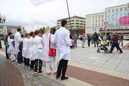Акция в защиту калининградского врача, обвиняемой в умышленном убийстве недоношенного младенца, состоялась на площади Победы 6 июля. Несогласованный властями пикет был организован «Альянсом врачей». В акции приняли участие чуть больше десятка человек, включая студентов-медиков и сотрудников скорой помощи.