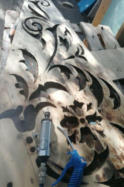 «Краска была масляной, первые два слоя — вообще цинковая краска, еще немецкая. Снимали вручную аккуратно, чтобы не повредить элементы, — цитирует „Волна“ представителя компании Григория Сабанова. — Панно сделаны из лиственницы, скреплены гвоздями. Датируются началом 20 века. Конечно, мы хотим сохранить и сами панно, и немецкие еще гвозди, выделить рисунок». Панно с изображением птиц состоит из 10 элементов. Сейчас подрядчик восстанавливает их вручную.