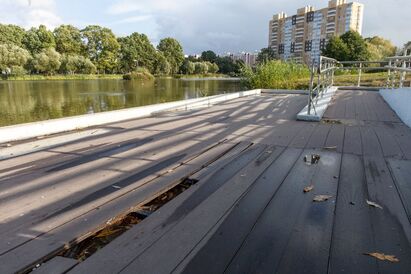Накануне калининградец Александр Панфилов заметил, что новая терраса на Летнем озере, построенная менее полугода назад, разваливается — покрытие местами провалилось, местами пошло буграми.
