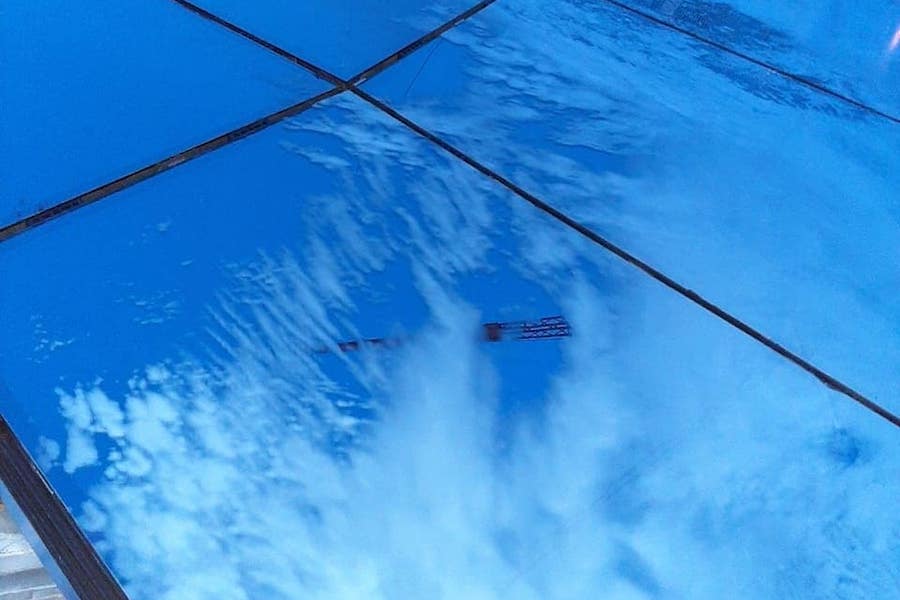 Непрозрачные крашеные стекла должны создать картинку «вид Земли из космоса». Шар разбит на сегменты, это трапециевидные стекла. На каждом уровне они имеют свою форму, каждое стекло абсолютно индивидуально, потому что имеет свой рисунок. Всего рабочим предстоит установить 1200 стекол. Подробнее о том, что будет представлять из себя новый корпус музея можно почитать тут.