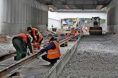За прошлую неделю трамвайные рельсы на ул. Киевской в Калининграде протянули от депо, сейчас рабочие сваривают стыки под железнодорожным мостом. Об сообщается в региональном паблике программы «Безопасные и качественные автомобильные дороги» «ВКонтакте».